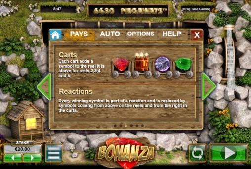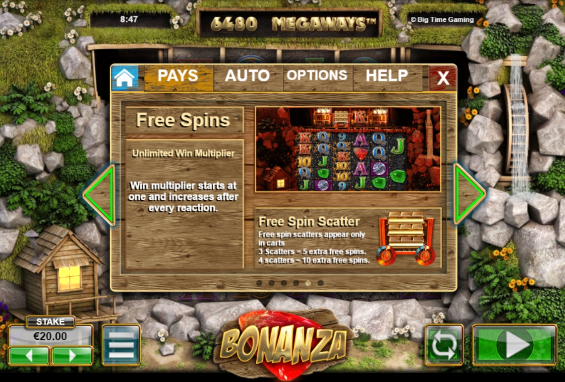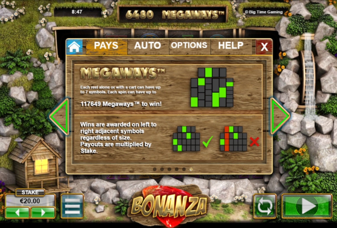 Видео-слоты Big Time Gaming, включая Bonanza, можно рекомендовать любителям оригинальных азартных развлечений. Непосредственно эта модель привлекает интересной системой формирования комбинаций, наличием дополнительной строки с картинками на основными барабанами, выгодными фри-спинами и другими перспективными особенностями.