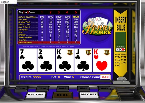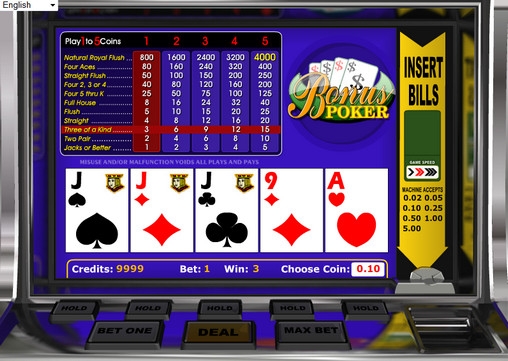 Bonus Poker – онлайн видео-покер, который играется стандартной колодой в пятьдесят два листа без джокеров. Все карты перемешиваются перед каждой раздачей.