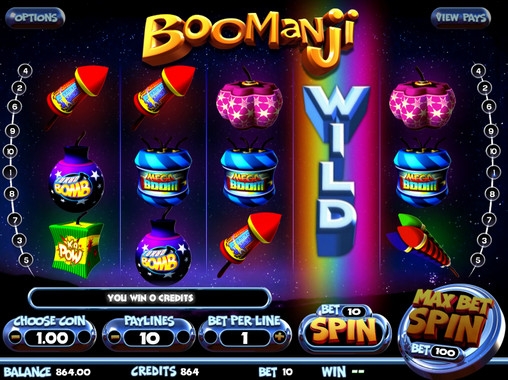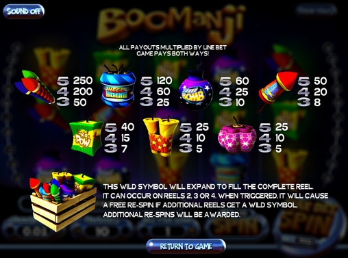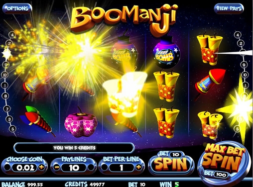 Новый бесплатный игровой автомат от компании Betsoft Gaming получил странное название Boomanji. Как вы понимаете, в английском языке такого слова нет. Оно напоминает название популярного фантастического кинофильма Joomanji («Джуманджи») с Робином Уильямсом в главной роли. Более того, нам кажется, что именно эта картина подсказала разработчикам так назвать их видео-слот. Но тематика Boomanji совсем другая. Это игра о фейерверках, так что будьте готовы к многочисленным взрывам, вспышкам и ярким краскам.