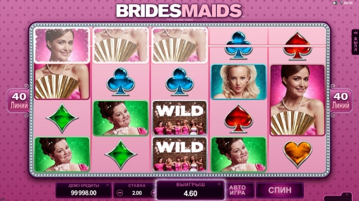 В видео-слоте Bridesmaids пять барабанов и сорок постоянно активных линий, на которые принимаются равные ставки. По каждой позиции принимается до пятнадцати монет номиналом от одного до десяти центов (на примере Next casino). Выходит, что на раунд можно поставить не менее сорока центов и не более шестидесяти долларов.
