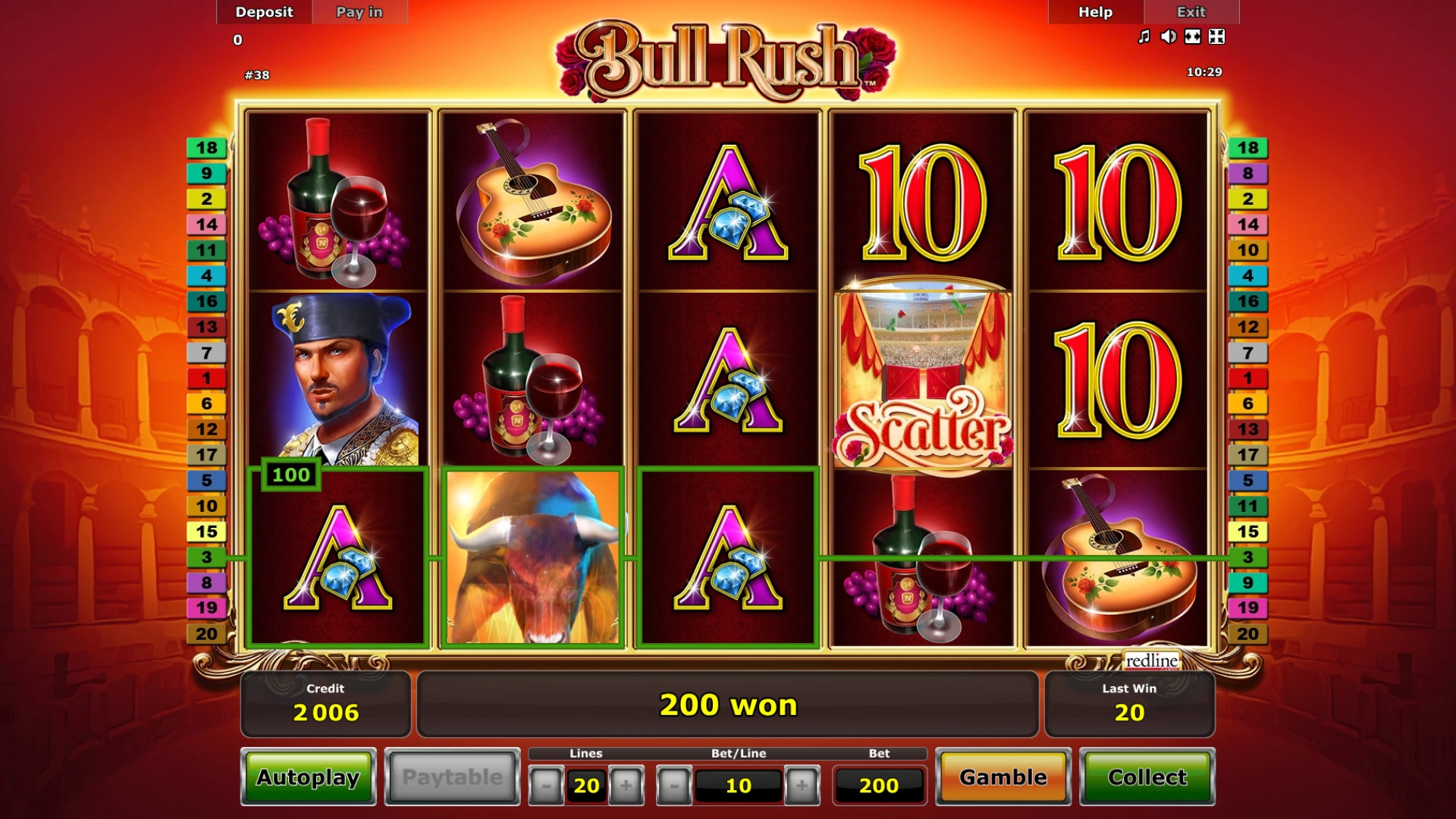 Активных линий двадцать. Диапазон ставок лучше выяснять в казино, где вы собираетесь играть, потому что лимиты могут быть разными.