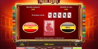 Раунд на удвоение классический. Угадайте цвет карты – и сумма удвоится. Ошибетесь – лишитесь денег. Здесь шансы на победу 50:50. О максимальных ограничениях читайте в справке.