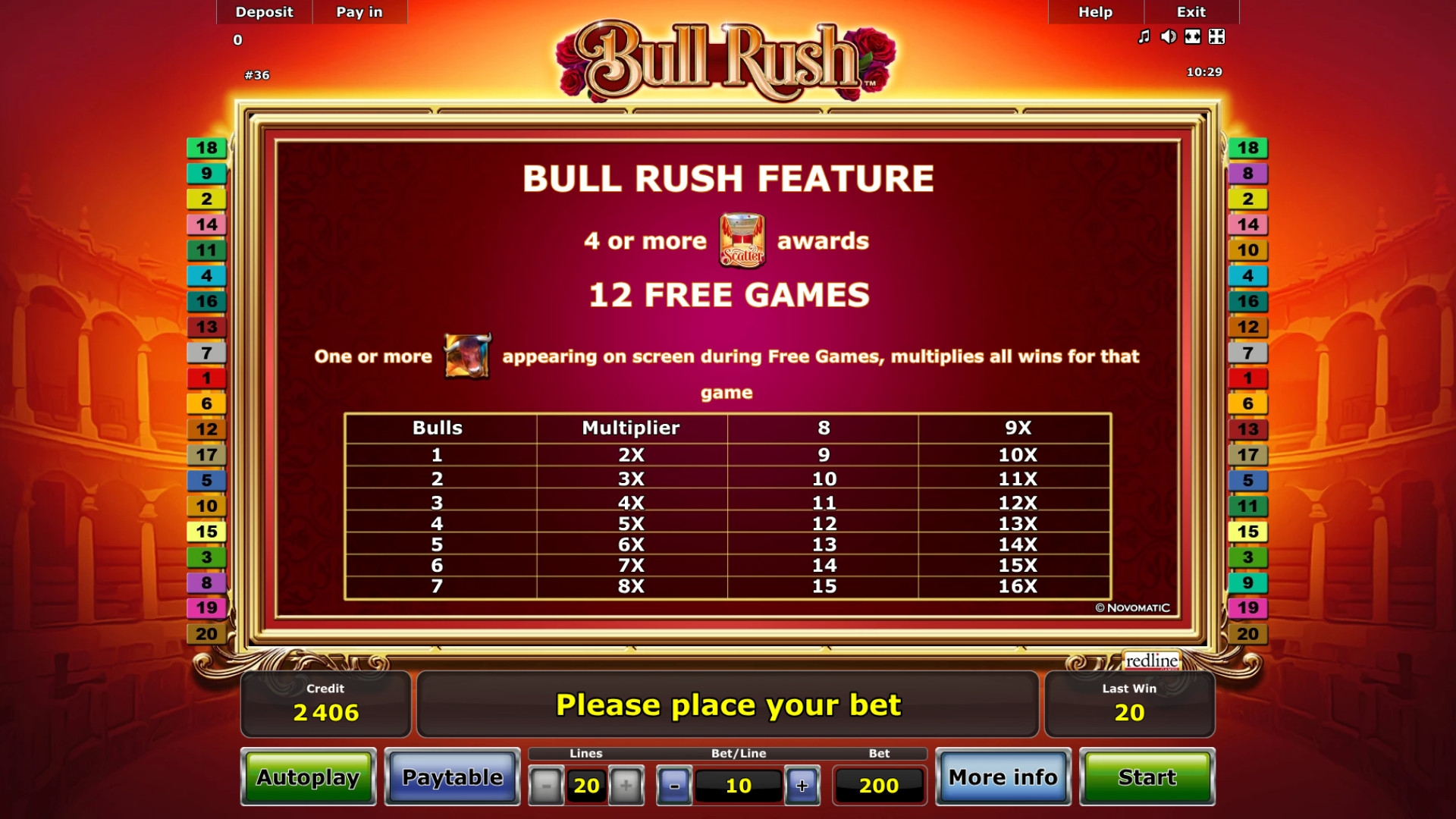 В Bull Rush нет накопительного джекпота «Новоматик».