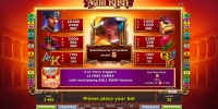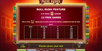 В Bull Rush доступны базовые картинки, джокер, скаттер, риск-игра на удвоение и фри-спины, проходящие на особых условиях.