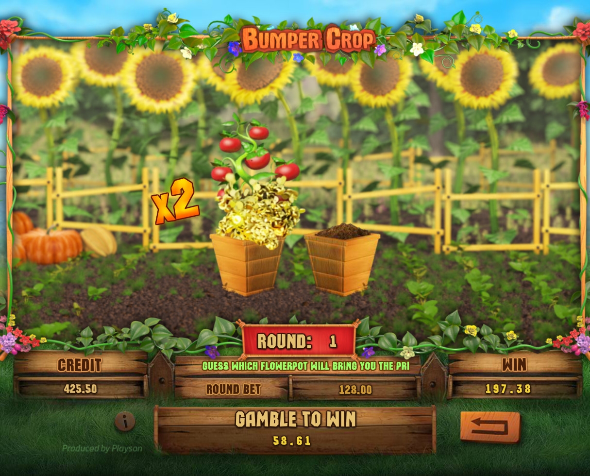 Розыгрыш накапливающегося джекпота в Bumper Crop не осуществляется.