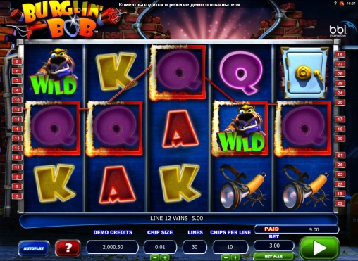 Burglin’ Bob - отличный игровой автомат! Видео-слот оформлен ярко, красочно, весело. Интерфейс простой и понятный. Очень радует наличие бонусной игры и бесплатных спинов! Рекомендую!
