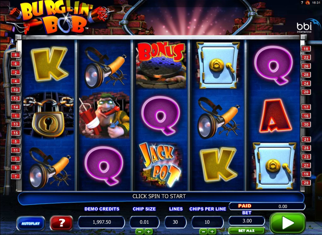 Burglin’ Bob – пятибарабанный видео-слот с тридцатью линиями. В нем есть особые символы, бесплатные спины, бонусный раунд и другие опции.