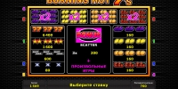 В StarGames, где наши обозреватели играли на игровом автомате, менять количество активных линий нельзя, хотя кнопки в интерфейсе предусмотрены. Выбор размера ставки осуществляется из расчета на одну линию, а в соседнем окошке указана общая сумма на кону.