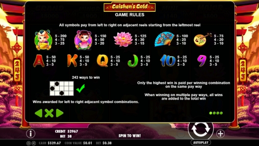 Игры на удвоение в Caishen’s Gold нет. Исключения из общих правил и дополнительные возможности рассматриваются далее в обзоре.