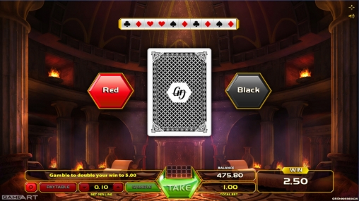 Игра по равным шансам запускается по желанию клиента. Она выдержана в классическом стиле «угадай цвет карты». Если вы дадите правильный ответ, выигрыш удвоится. Если ошибетесь, лишитесь ставки. Подряд можно действовать до пяти раз.
