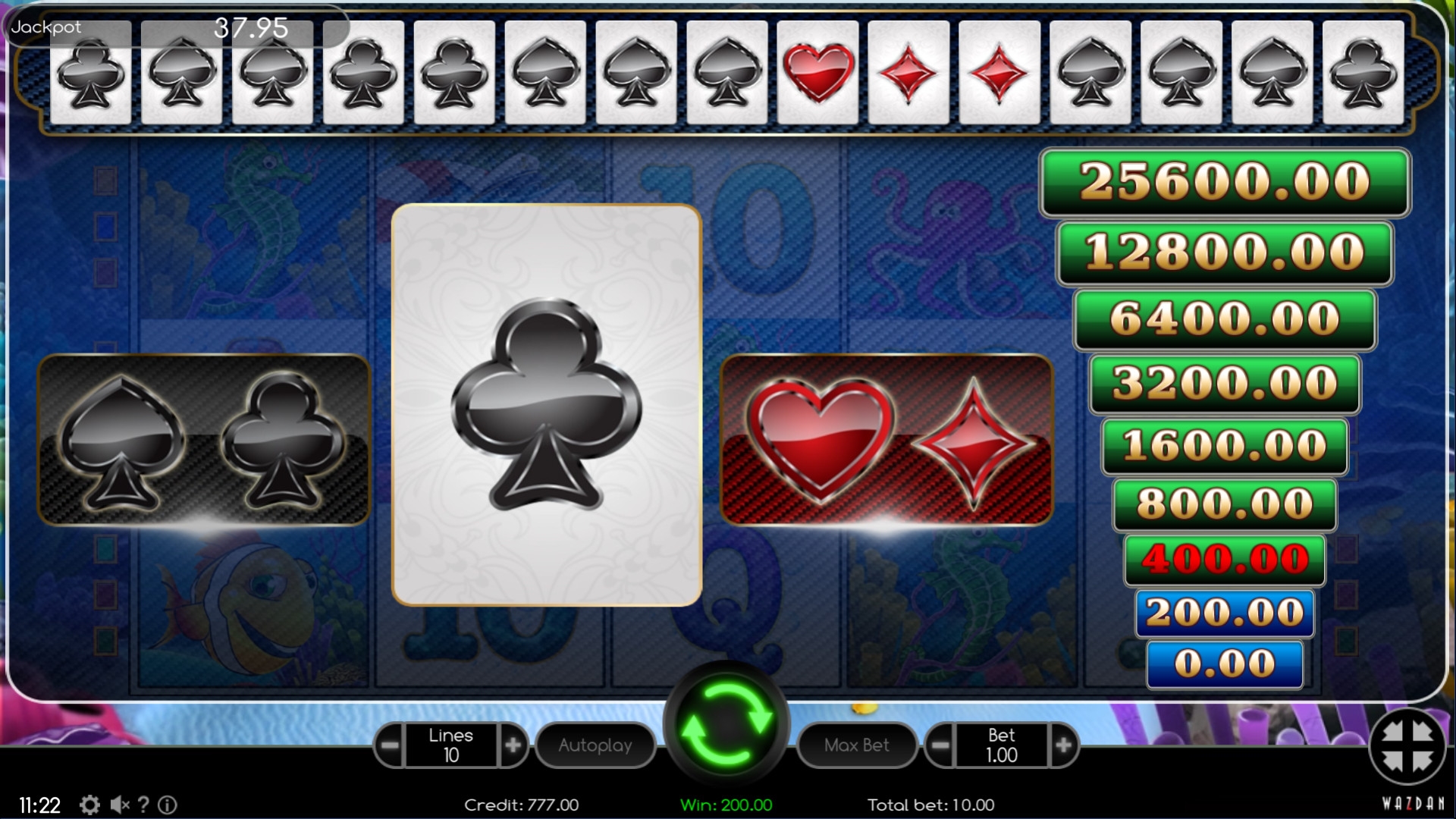 По завершению раунда, который принес выплату любого размера, ее можно попытаться увеличить в игре по равным шансам. Здесь нужно угадывать цвет карты, чтобы удваивать сумму. Правила интуитивно понятны, а максимум указан в специальной шкале.