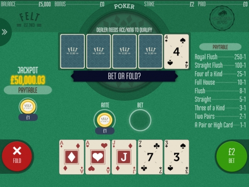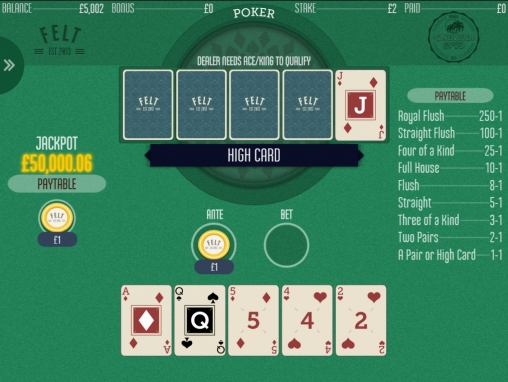 Довольно качественный дизайн, понятный интерфейс, игра проходит по классическим правилам покера, достаточно высокие множители. Здесь можно даже сорвать джэк-пот, если повезет.