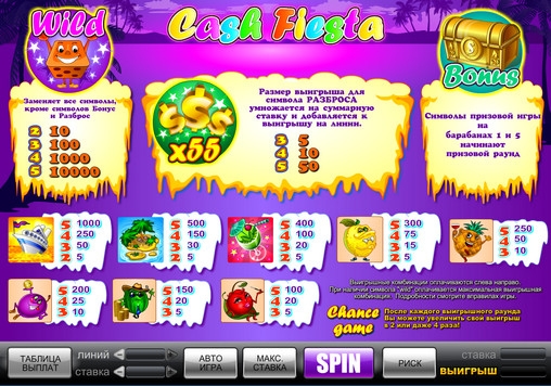 «Денежная фиеста» (Cash Fiesta) предоставляет прекрасную возможность успешного, веселого и прибыльного проведения свободного времени. Беспроигрышная бонусная игра – это дополнительный шанс приумножить выигрыш.
