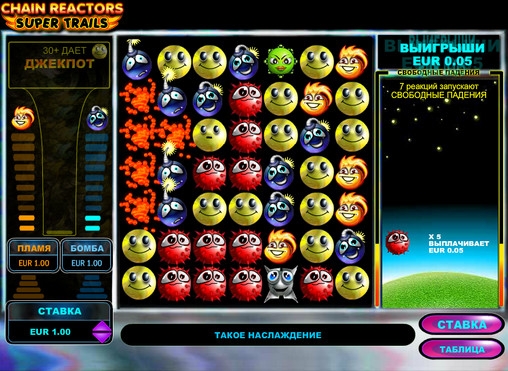 Играть в Chain Reactors – Super Trails можно по ставке от десяти центов до десяти евро. Максимальный коэффициент равен х2000.