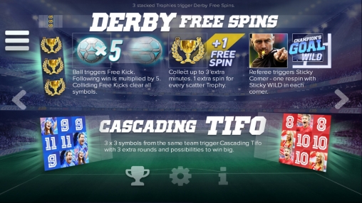 Отличный в оформлении и в предложении бонусных игр автомат. В него с удовольствием сыграют не только поклонники футбола, но и простые игроки. Основное его достоинство - это различные бонусы, которые могут принести неплохой выигрыш.