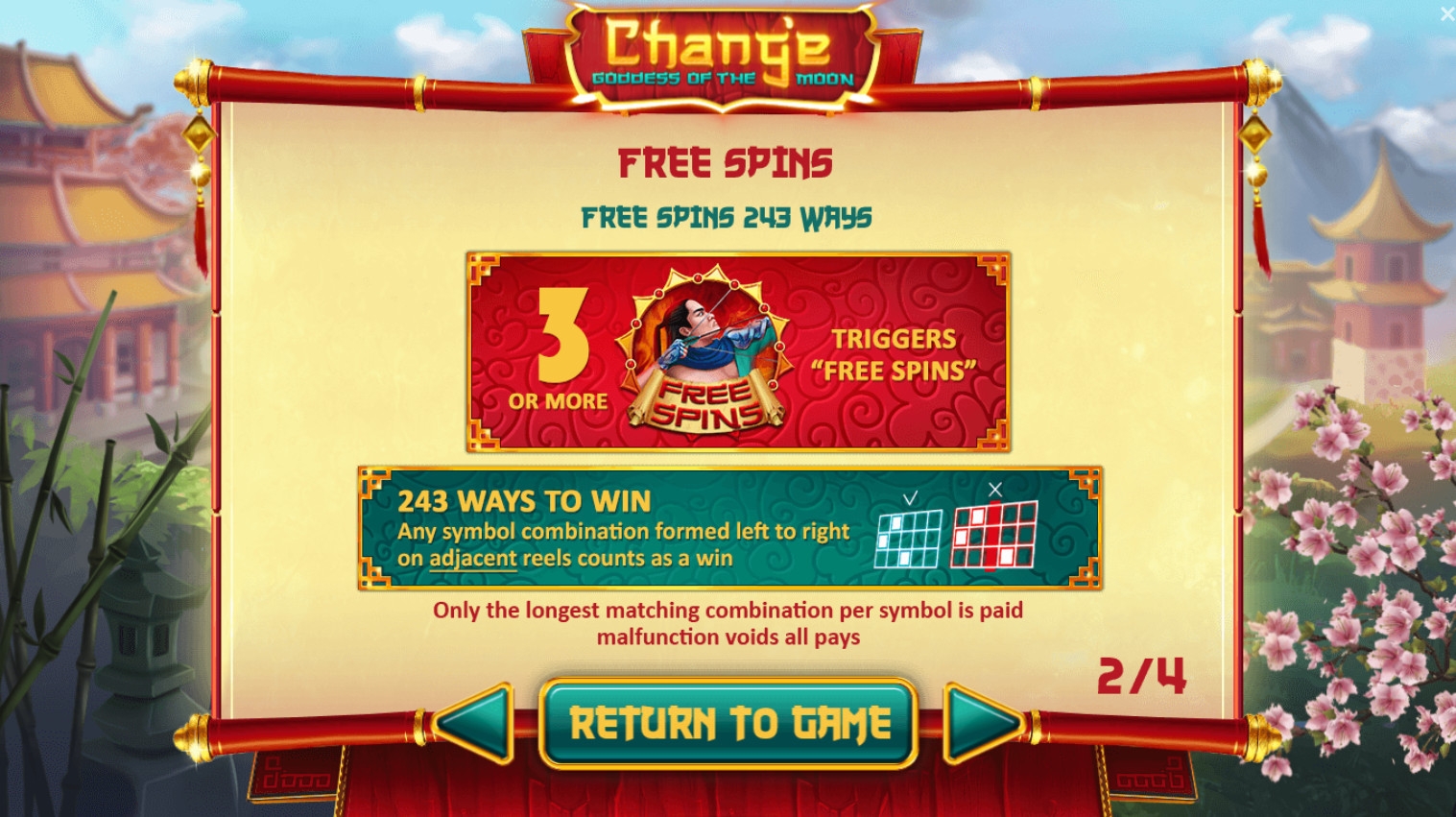 Разработчики предлагают в Chang’e Goddess of the Moon десять базовых иконок, джокеры, скаттеры, фри-спины и дополнительные бонусы.
