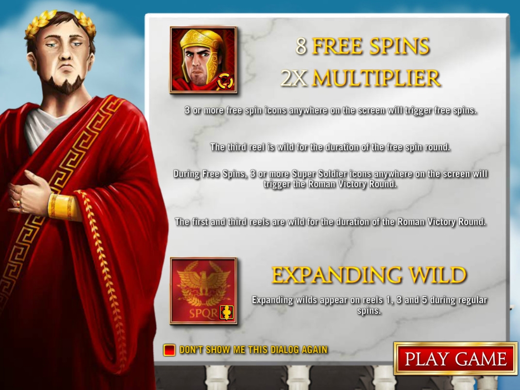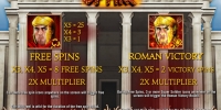 - Roman Victory – Если во время фри-спинов от трех скаттеров оказываются где-нибудь на экране, активируется режим «Римская победа». До конца бесплатных вращений джокерами заливаются не только третья, но и первая колонка.