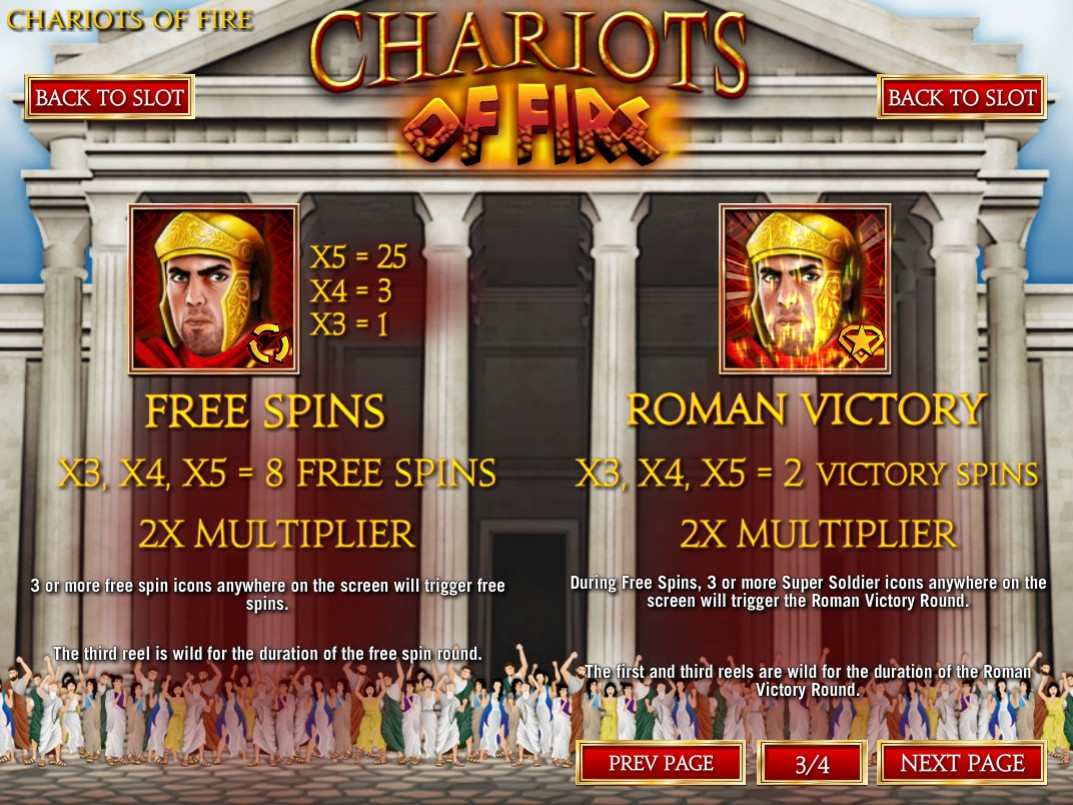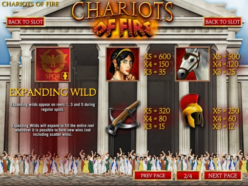 Онлайн-аппарат о Древнем Риме представляет компания Rival. На барабанах Chariots of Fire появляются колоритные герои, а набор игровых опций включает в себя разнообразные интересные возможности. С ними вас познакомит детальная обзорная статья, подготовленная энциклопедией азартных игр Casinoz. Читайте, испытывайте новинку и делитесь впечатлениями.