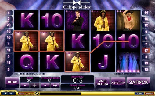 Chippendales – бесплатный игровой автомат от Playtech. В нем пять барабанов, двадцать линий и три ряда картинок на экране. Играть на игровом автомате Chippendales можно по одной – двадцати активным линиям, поставив на каждую из них от двадцати центов до пятисот евро. На спин принимается до десяти тысяч евро (на примере Europa Casino).