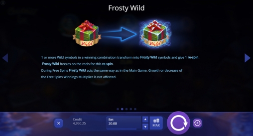 Это замечательная игра с великолепной новогодней атмосферой и увлекательными возможностями. Здесь часто запускаются повторные спины, образуется много комбинаций, есть отличные бесплатные вращения с дополнительными бонусами. В общем, классная новинка под любимые праздники.
