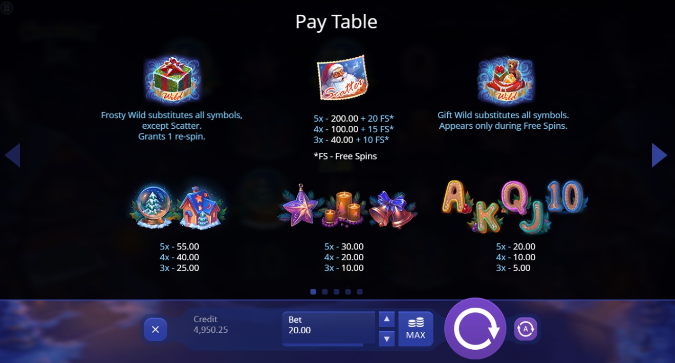 Поиграл от души. Один из лучших автоматов на новогоднюю и рождественскую тематику. Приятная цветовая гамма, яркие персонажи. Поднял здесь больше 100 баксов, которые благополучно вывел.