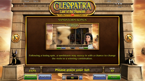 Очередным слотом о Клеопатре стал аппарат Cleopatra: Last of the Pharaohs, которую представляют разработчики из компании Novomatic. Думаем, она заинтересует вас интересными призовыми опциями и другими достоинствами, о которых вы узнаете из статьи от обозревателей энциклопедии азарта Casinoz.