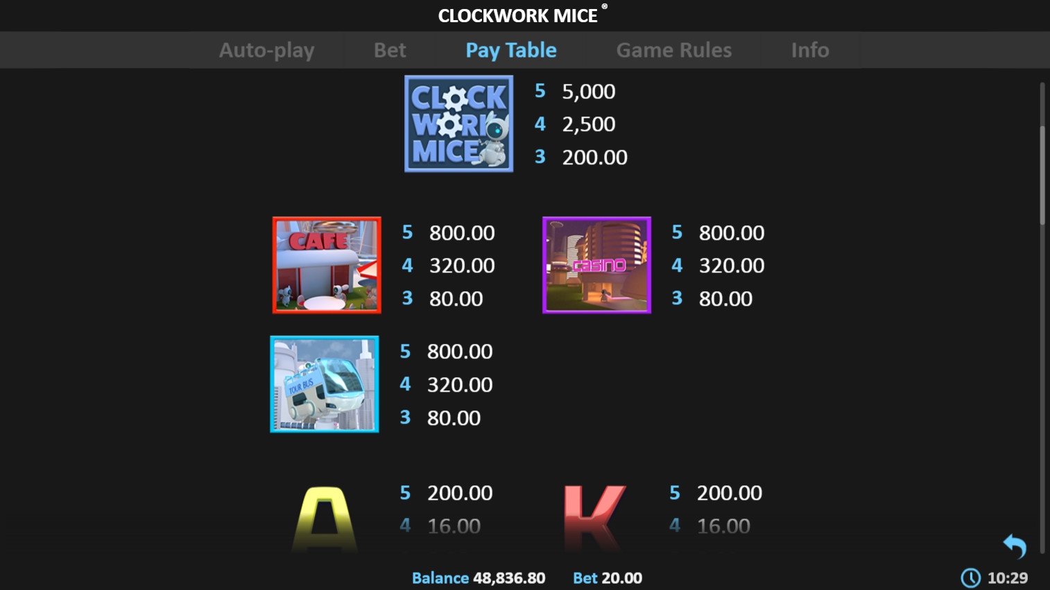 В мобильных онлайн-казино Clockwork Mice открывается в упрощенном интерфейсе. Он позволяет запускать игру на любых современных устройствах под управлением популярных операционных систем. Автомат открывается даже при слабом интернете. Системные требования минимальные.