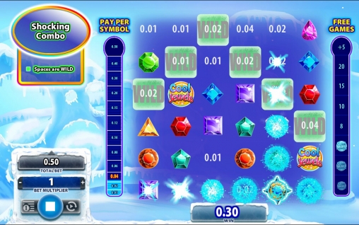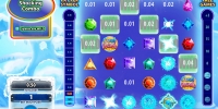 Теперь о системе расчета выплат. Интересно, что в Cool Jewels нет коэффициентов, по которым бы начислялись выигрыши за цепочки символов. Вместо них справа от экрана располагается специальная шкала с делениями (напоминающая градусник). В каждом из делений есть от шести до пятнадцати пунктов. При образовании комбинации картинки, вошедшие в ее состав, заполняют данную шкалу: по одному пункту за символ.