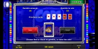 Далее можно вывести деньги на счет или попытаться увеличить выплату в раунде на удвоение. Он сюрпризов не преподносит. Нужно просто угадывать цвет закрытой карты. Правильный вариант удваивает выигрыш, а неправильный означает, что кредиты уходят в кассу заведения. Разрешается действовать несколько раз подряд, но право на ошибку не предоставляется.