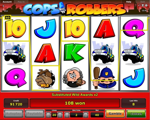 Это видео-слот Cops ‘n’ Robbers, который выпустила известная компания Mazooma Interactive, которая входит в состав корпорации Novomatic. Он обладает отменной графикой и забавными персонажами, а набор функций способен заинтересовать любого игрока.