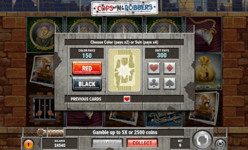 Риск-игра запускается по желанию пользователя. Здесь можно угадывать цвет или масть карты. Правильный ответ в первом случае удваивает сумму, а верно названная масть увеличивает выплату в четыре раза. Подряд можно играть до пяти раз. При ошибке вы лишаетесь денег. В данном раунде у казино нет математического превосходства.