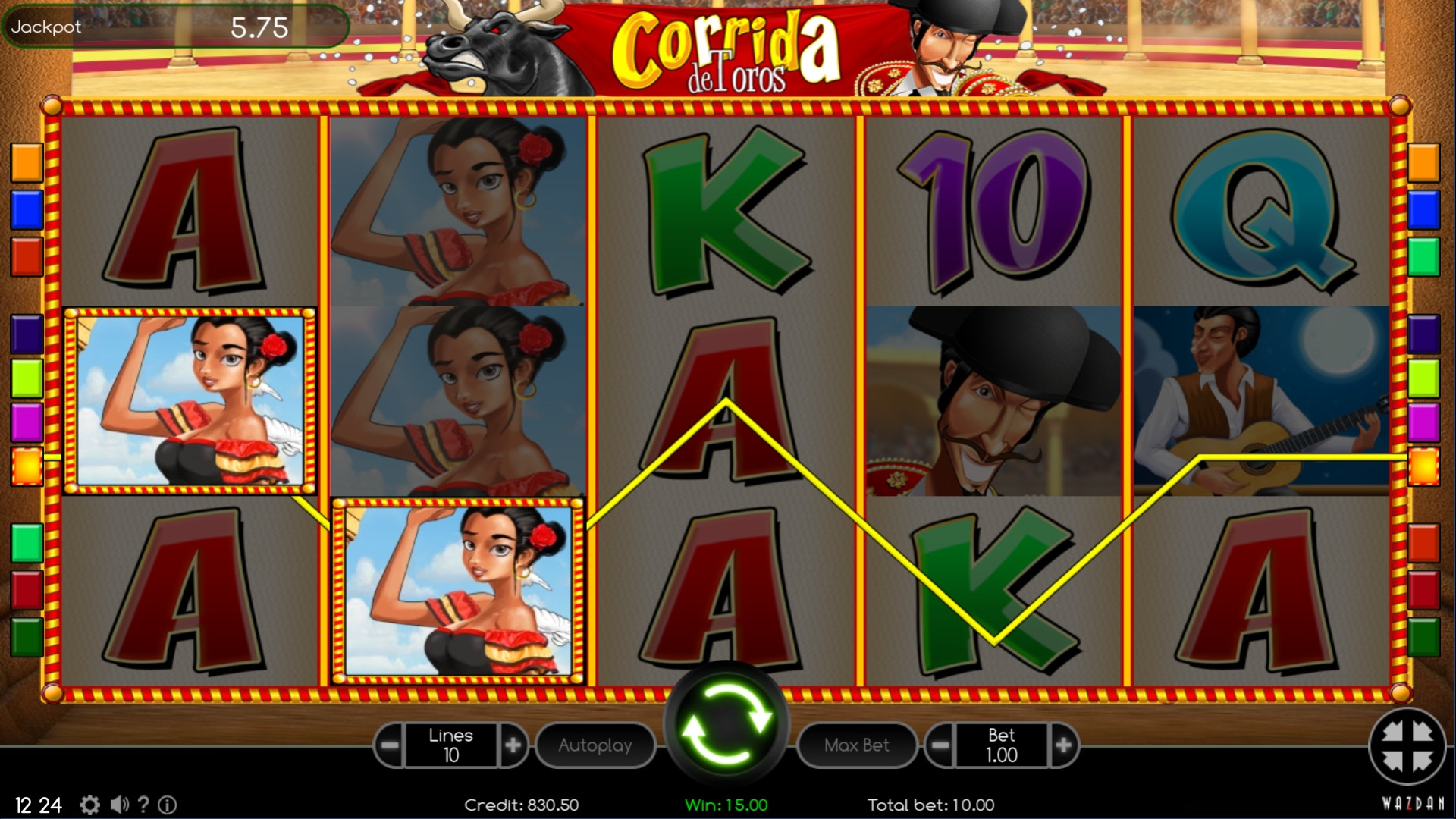 Онлайн-казино на софте Wazdan могут предлагать единые прогрессивные джекпоты на автомате Corrida de Toros.