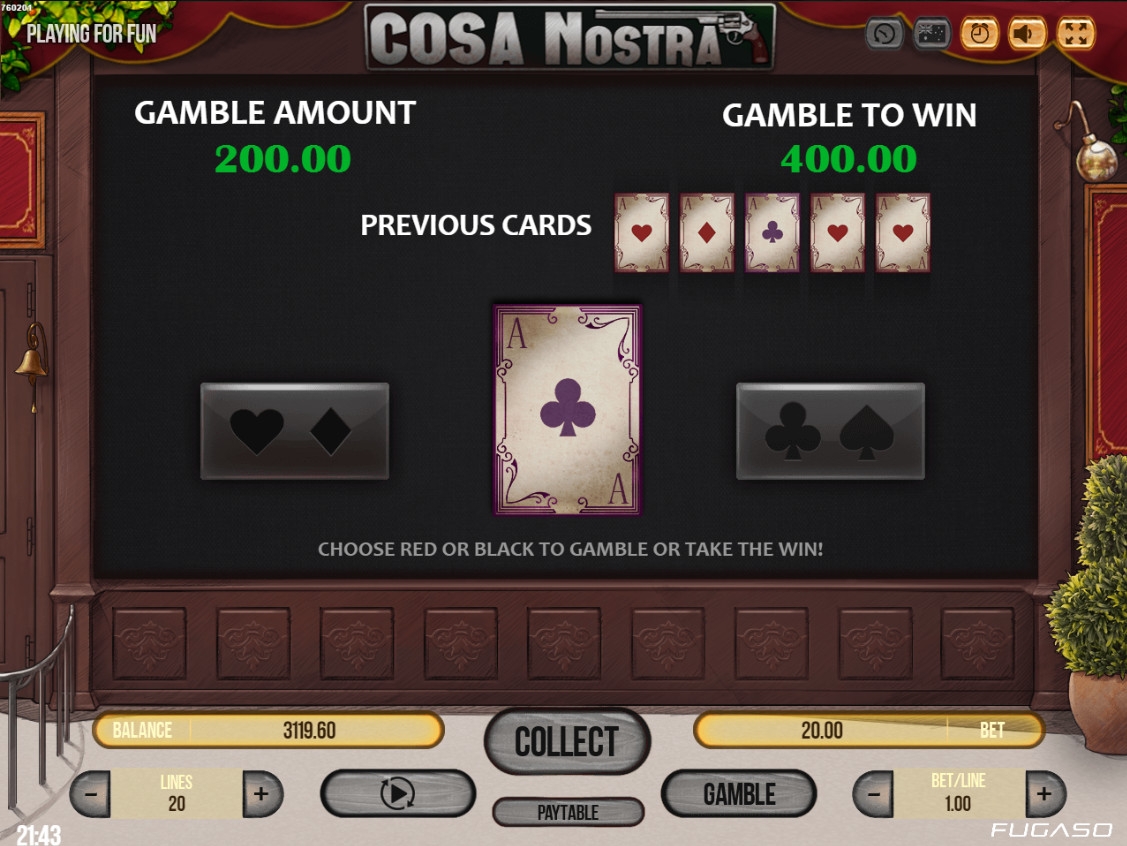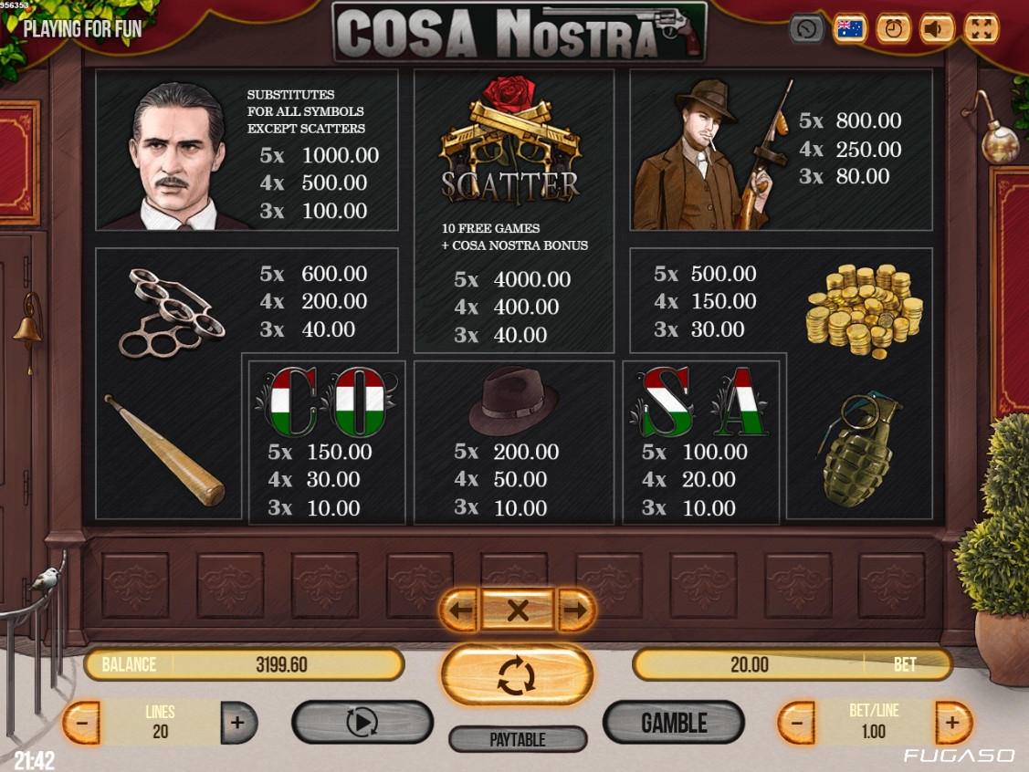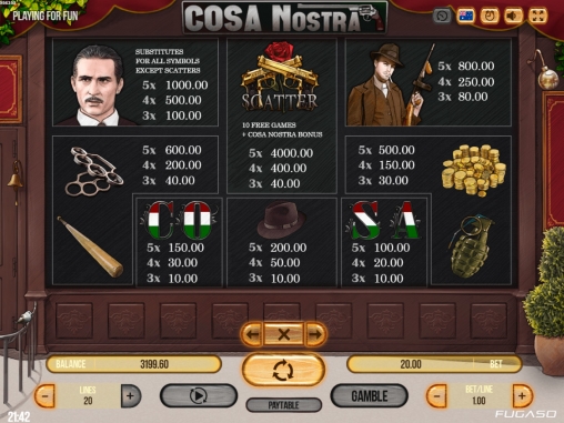 В Cosa Nostra не предусмотрен розыгрыш накопительного джекпота от компании Fugaso.