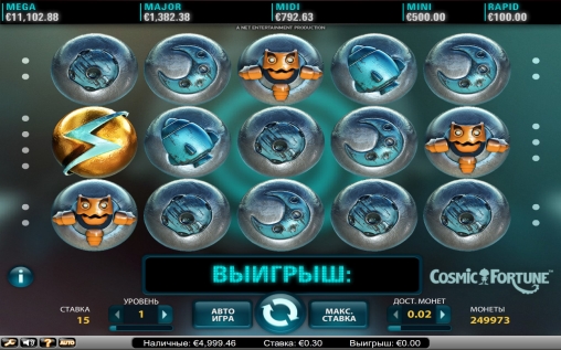 В видео-слоте Cosmic Fortune разыгрываются сразу пять джекпотов. Три из них прогрессивные, а два фиксированные. Получить их можно в специальном раунде. Он начинается, если в призовой игре, которая запускается после фри-спинов, камешки заполнят шкалу джекпота (Jackpot Meter). Здесь эти камешки также будут задействованы (как именно, вы узнаете, когда сможете протестировать слот). Без выплаты ни один участник раунда не остается.