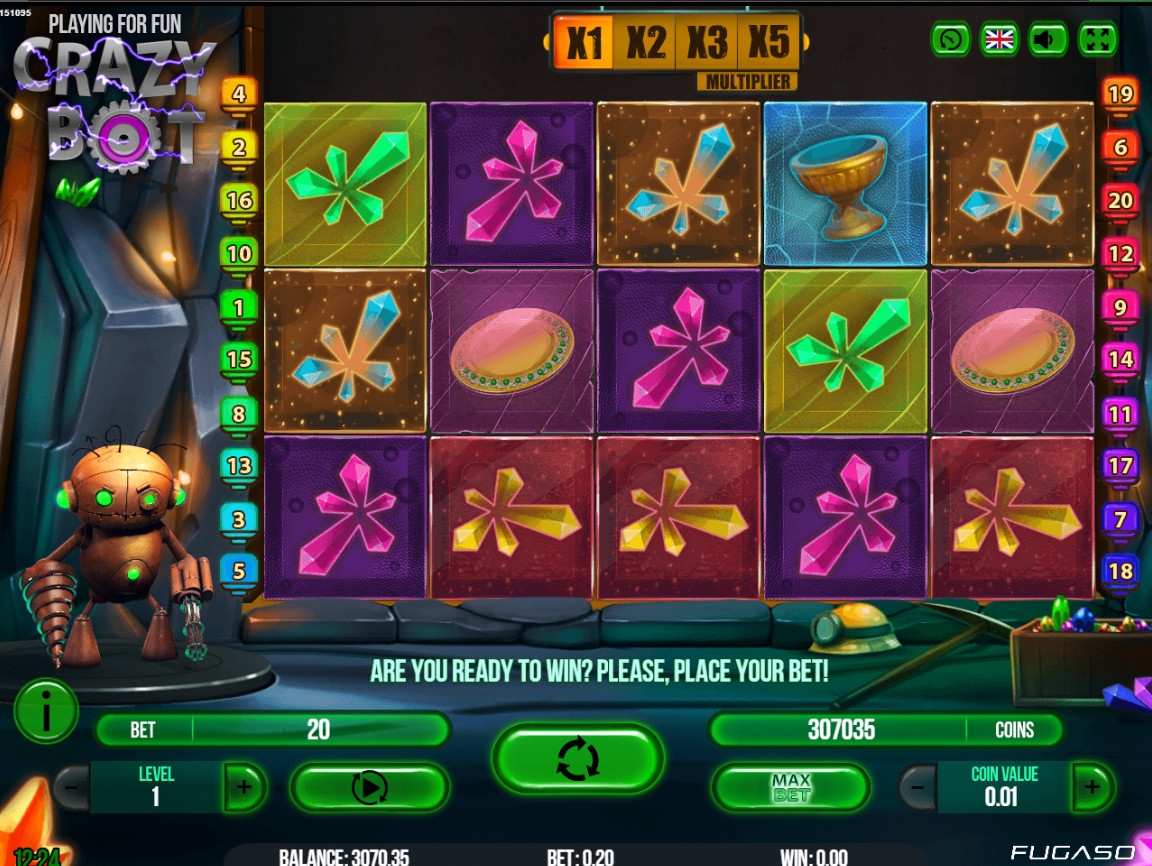 Хотите испытать видео-слот Crazy Bot бесплатно? Такую возможность предоставляют разные интернет-казино, сотрудничающие с FuGaSo. Например, демо-версия автомата и реальная версия для игры на деньги есть в CashPot casino.