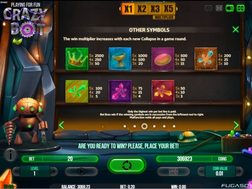 В Crazy Bot не предусмотрен розыгрыш накопительного джекпота от Fugaso.