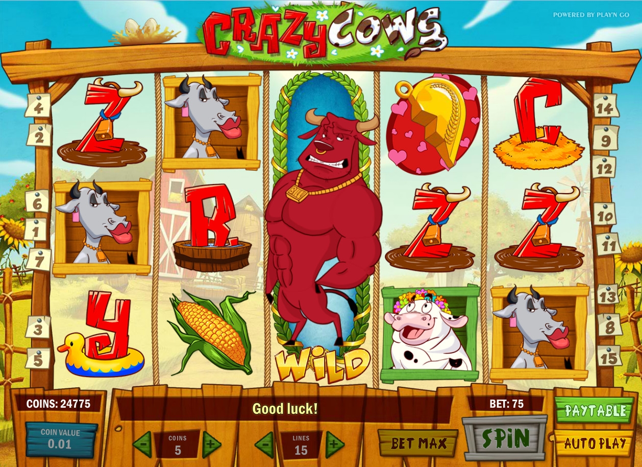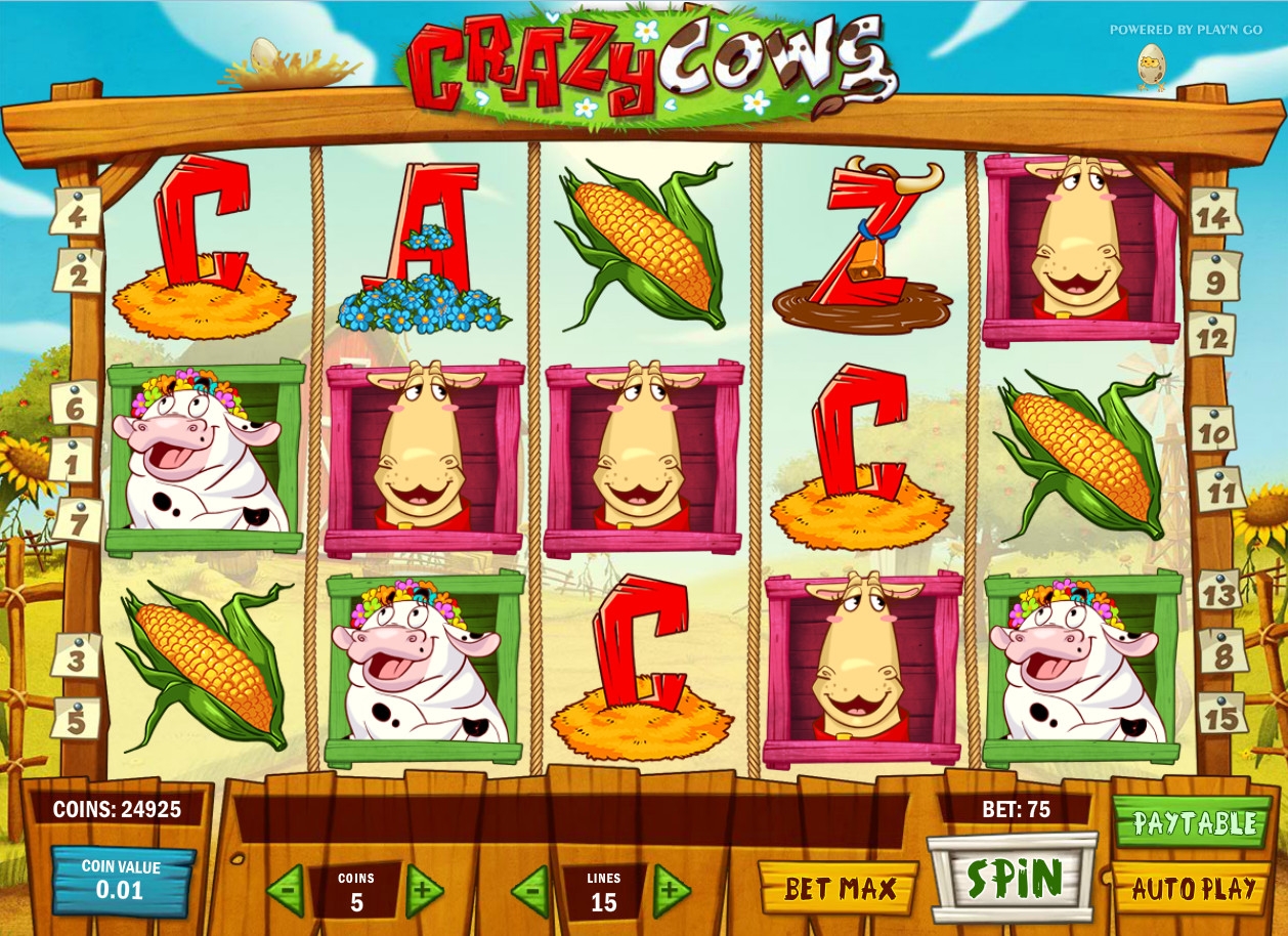 Не каждому современному городскому жителю приходилось близко видеть коров. Но всякий, кому доводилось заглядывать им в глаза, навсегда запоминает грустный, меланхоличный взгляд. Бесплатный игровой автомат Crazy Cows также посвящен этим домашним животным, только вот здесь они предстают в несколько ином виде. Если точнее, главные действующие лица данного видео-слота слегка неуравновешенны, чем разительно отличаются от своих реальных прототипов. Эту модель выпустила компания Play’N GO, которая часто радует клиентов интернет-казино бесподобными азартными играми. Так что вам обязательно стоит протестировать их новинку.