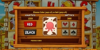 Выплаты по всем комбинациям суммируются. Далее клиент может забрать деньги или поставить на кон в игре по шансам. Здесь нужно угадывать цвет или масть (по выбору пользователя) закрытой карты. Верно названный цвет удваивает выигрыш, а угаданная масть увеличивает его в четыре раза. В одном раунде можно играть до пяти раз подряд или же до того, как будет достигнут максимум – 2500 монет.