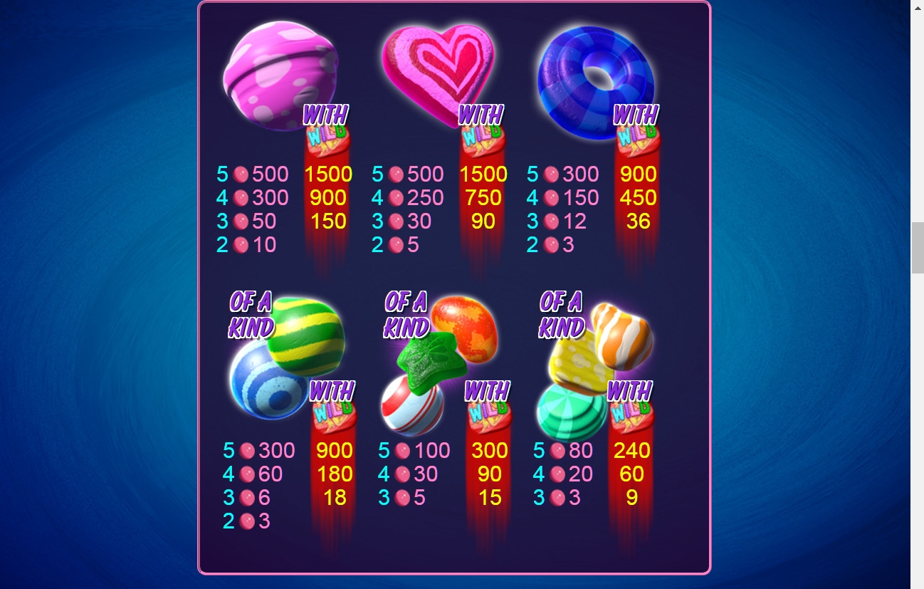 - Extra Wild (желтая конфетка) доступен лишь во время бонуса Super Sweet Feature. Он также заменяет любые символы.