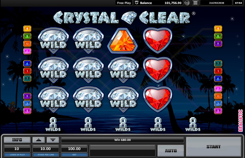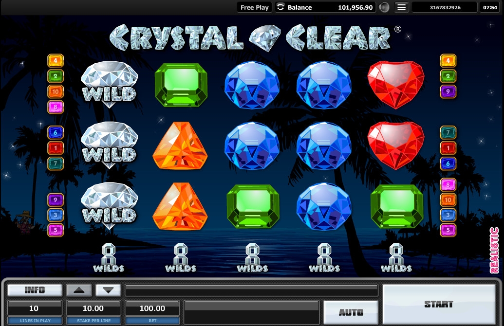 Разработчики из компании Realistic Games удивили нас новым видео-слотом Crystal Clear, на экране которого появляются различные драгоценные камни. На первый взгляд, игра представляет собой обычный аппарат с разными видами картинок. В действительности, модель обладает уникальными особенностями символов Wild, а также несколькими дополнительными интересными функциями игрового процесса. Все возможности автомата рассматриваются далее в статье от обозревателей Casinoz.
