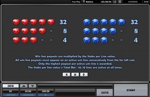 Ставка на каждую полосу варьируется в диапазоне от одного цента до десяти евро. Выходит, что на спин принимается не менее десяти центов и не более ста евро, хотя в отдельно взятых казино лимиты могут отличаться.