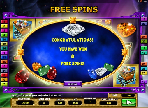 Играть на игровом автомате Crystal Gems можно, поставив на линию 0.01, 0.02, 0.05, 0.10, 0.20, 0.25, 0.50 и 1 евро. Соответственно, максимальная ставка на спин равна двадцати пяти евро.