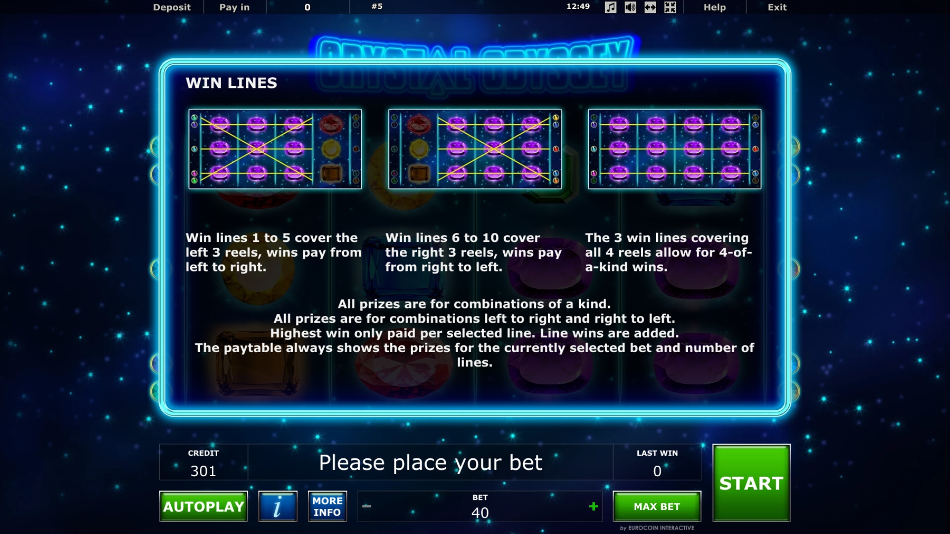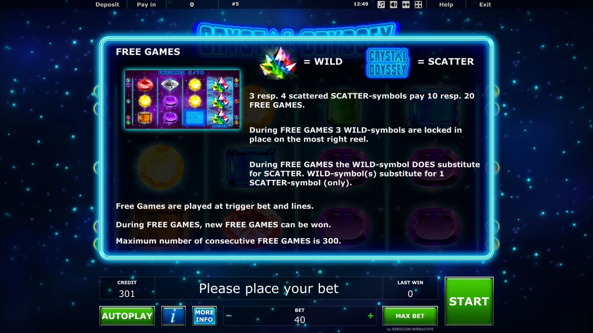 Crystal Odyssey не относится к числу игр Novomatic с накопительными джекпотами.