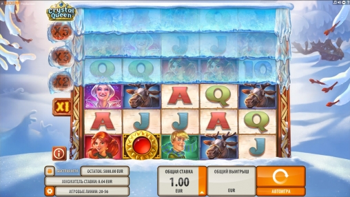 В Crystal Queen пять барабанов и тридцать картинок на основном экране, расположенных по схеме 5х6. Всего в игре пятьдесят шесть линий, но изначально задействованы лишь двадцать, которые действуют на трех нижних рядах символов. В процессе могут быть разблокированы еще три ряда картинок. Каждая из них дает возможность формирования комбинаций на дополнительных двенадцати линиях.