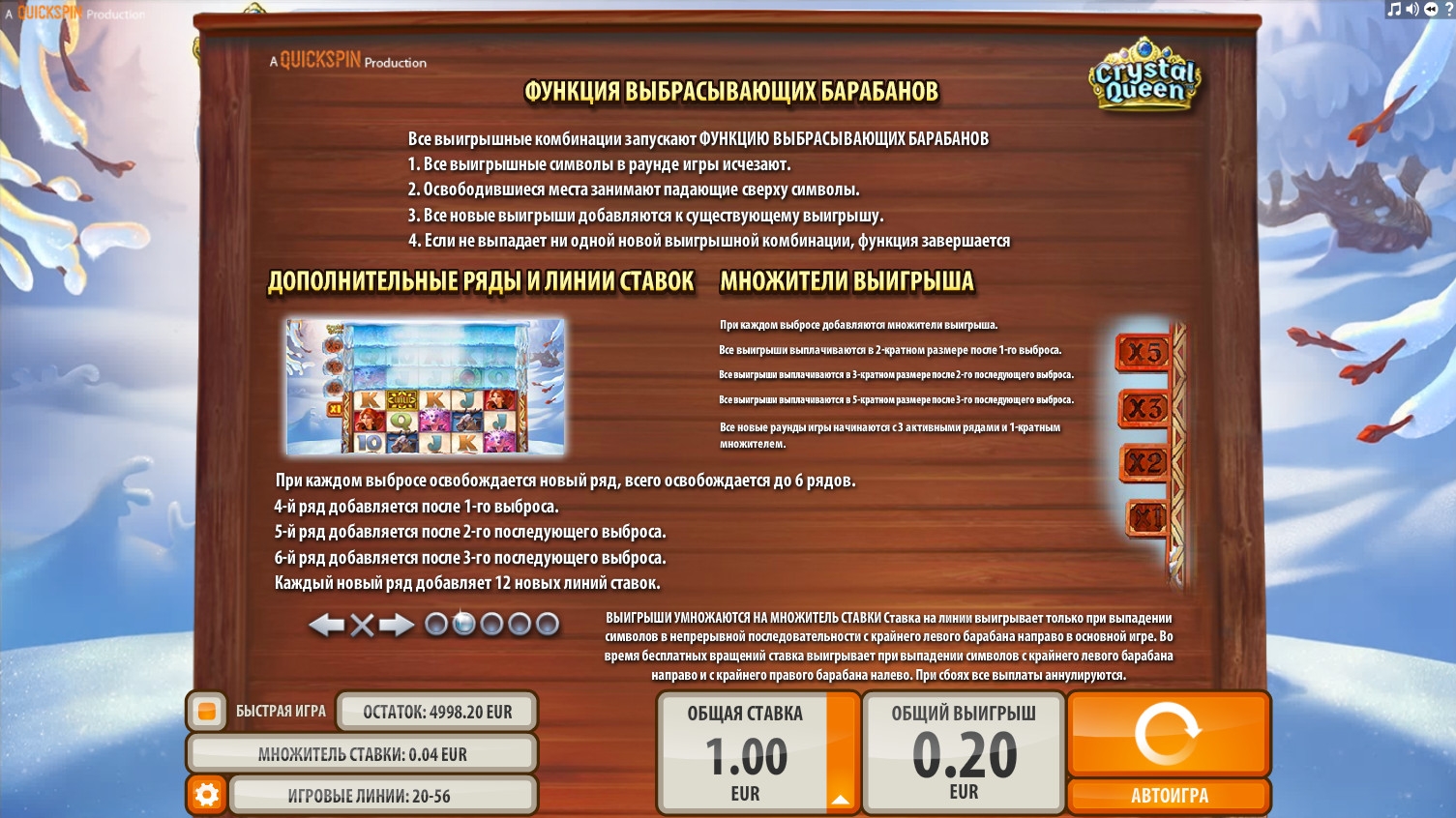 Игры по шансам в Crystal Queen нет, поэтому все выплаты, начисленные по итогам розыгрыша, автоматически выводятся на счет.