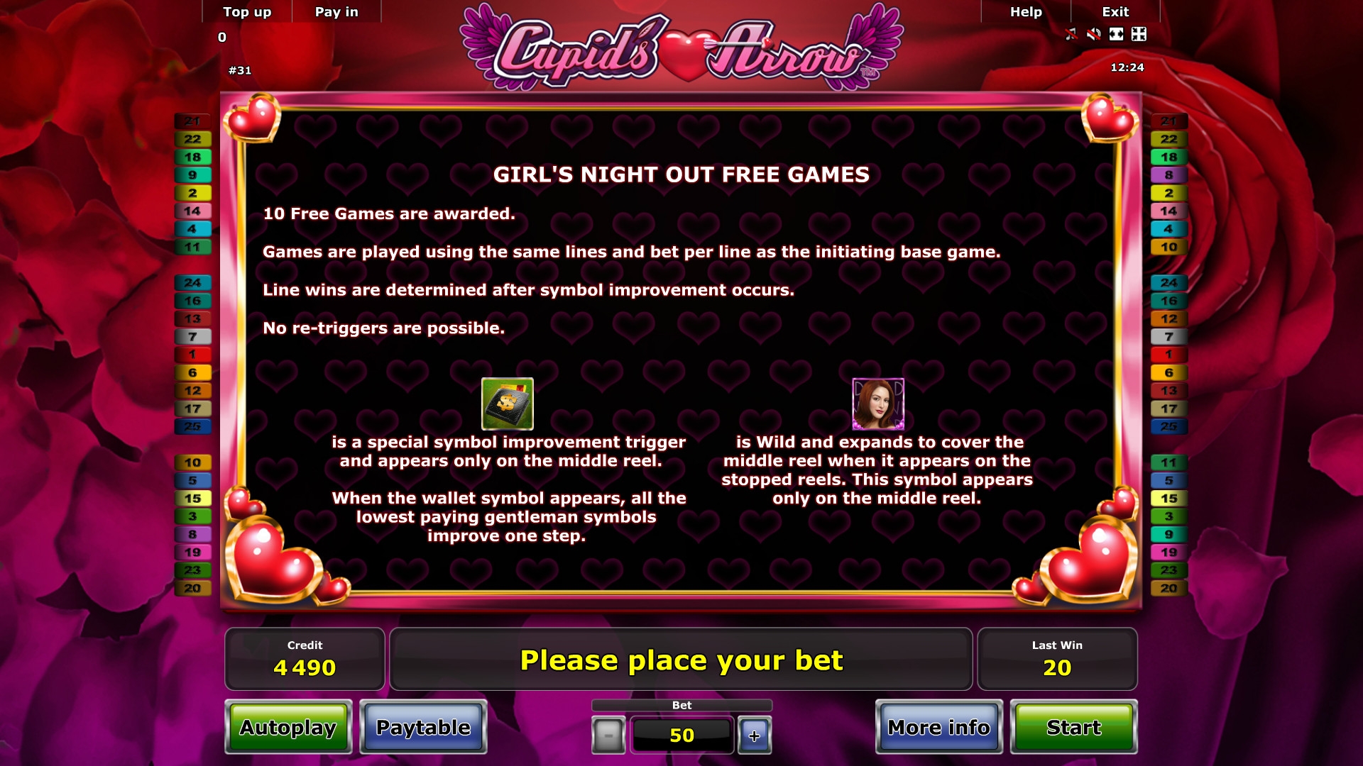 Кроме того, здесь представлены особые символы Wild (логотип Cupid’s Arrow), еще один Wild (фигурка Купидона) и Bonus (розовая коробка). О них далее: