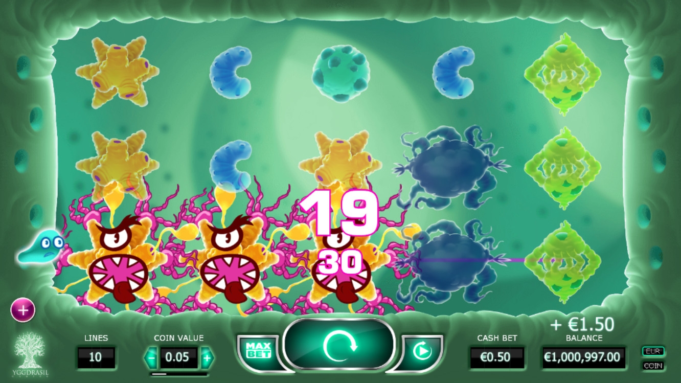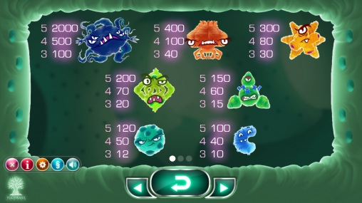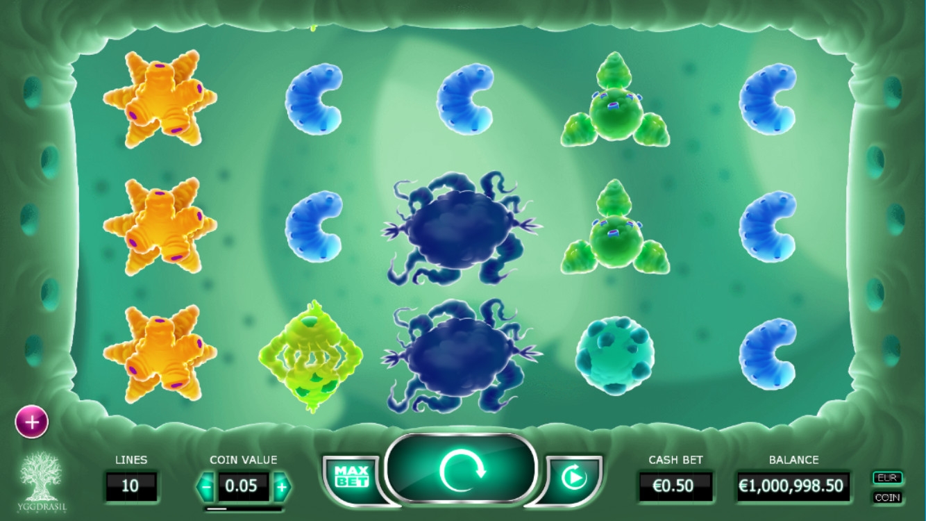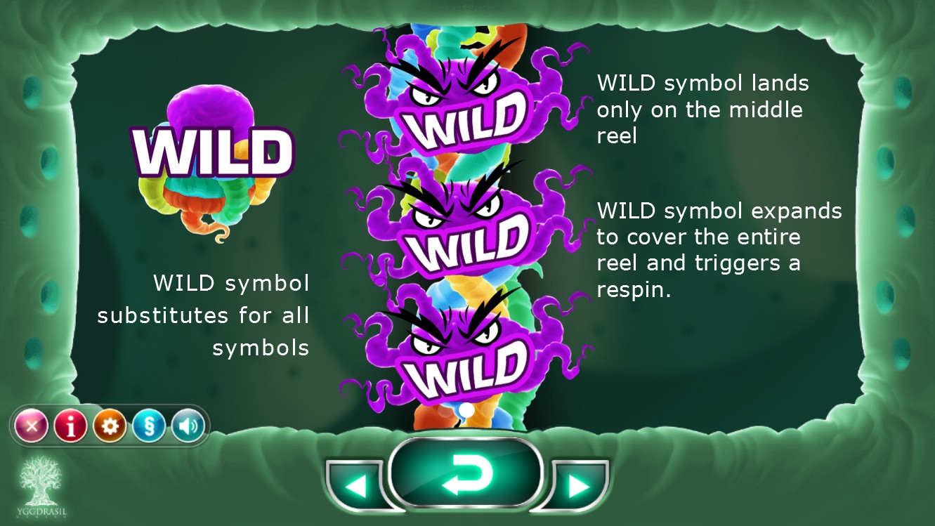 В слоте появляются изображенные в шуточной форме молекулы различных вирусов. Когда они принимают участие в образовании комбинации, то оживают и начинают корчить рожицы. Всего в игре семь таких элементов. Картинки идут полосами и могут занимать не только целую колонку, но и все позиции на экране.