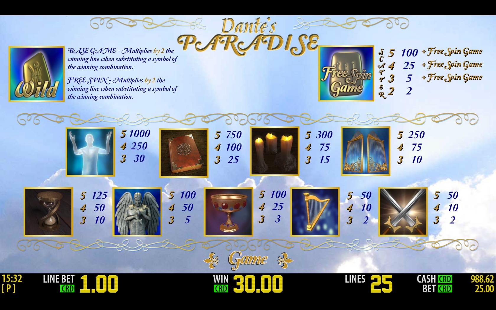 Скачивать Dante’s Paradise не нужно. Видео-слот представлен во флэш-версии.