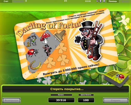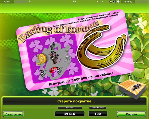 Еще совсем недавно моментальные онлайн-лотереи были в интернет-казино довольно экзотическим развлечением, и подобные модели выпускались лишь некоторыми производителями. Но сейчас ситуация в корне изменилась. Бесплатные скрэтч-карты предлагаются под многими брендами. Естественно, столь известная компания, как Novomatic, не могла остаться в стороне от насколько популярного веяния. С некоторых пор в ассортименте ее игр также представлены такие лотереи. Одной из них является Darling of Fortune («Баловень судьбы»), которой посвящен данный обзор от портала Casinoz.