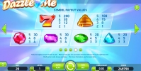 В Dazzle Me используются шесть базовых картинок: четыре драгоценных камня разных цветов, красная семерка и оранжевый колокольчик. Они идут на барабанах непрерывными полосами, поэтому любой из них может занимать полностью целую колонку или даже весь экран.